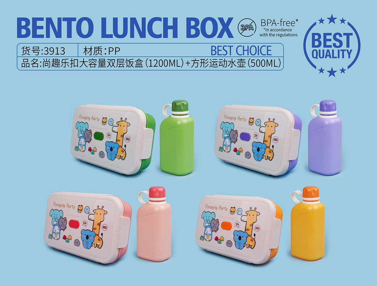 尚趣樂扣大容量雙層飯盒(1200ml)+方形運(yùn)動水壺(500ml)