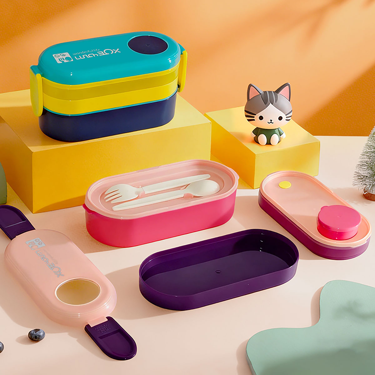 三層便當(dāng)盒(帶硅膠)(900ML)