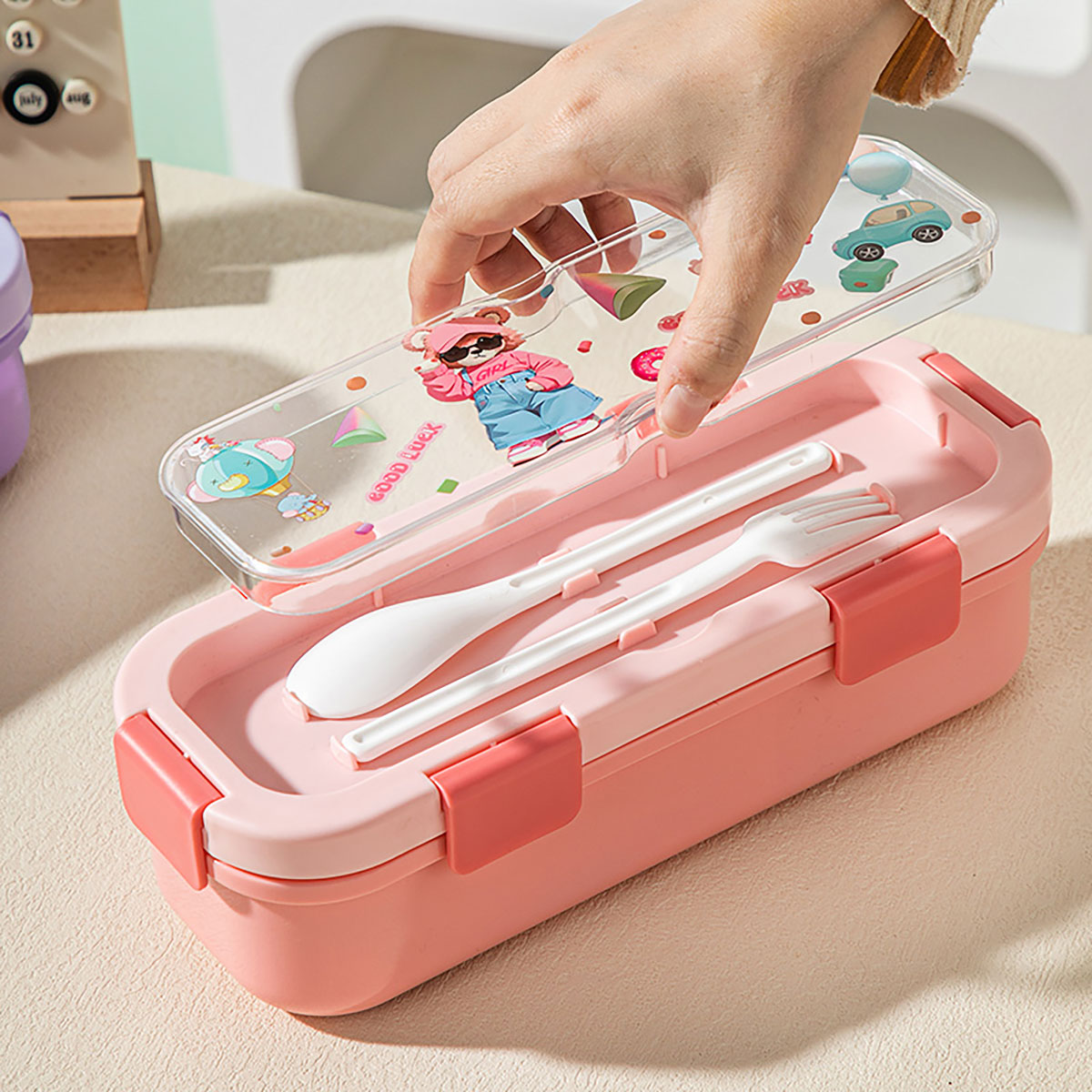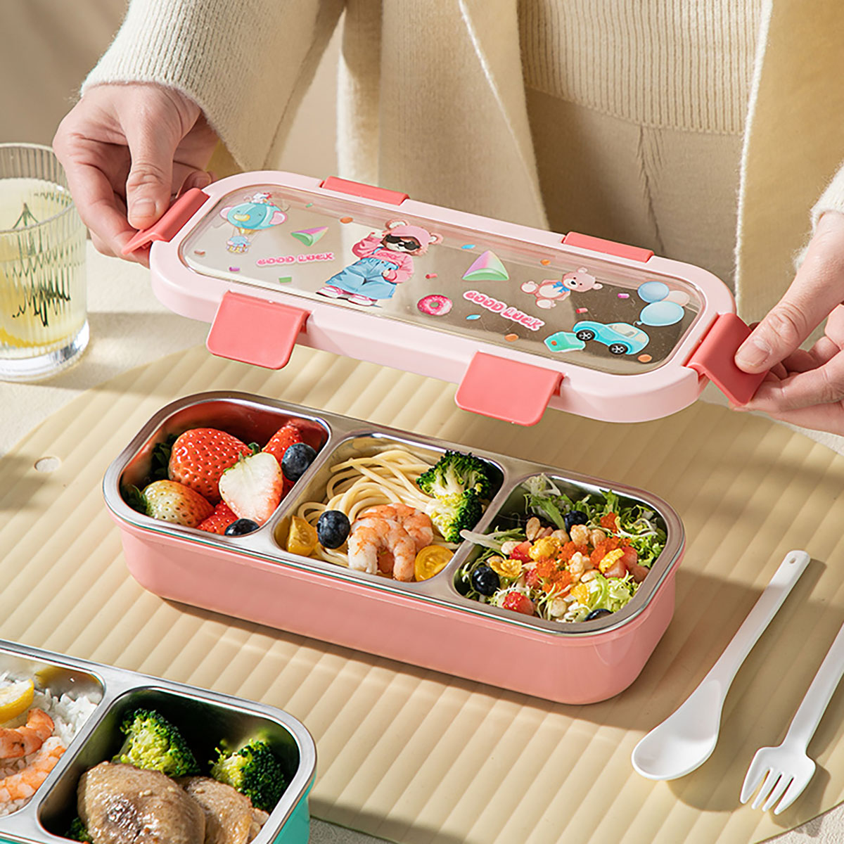 (印花款)愛悅長方形便當(dāng)盒兩格/三格可選 塑料款/不銹鋼款