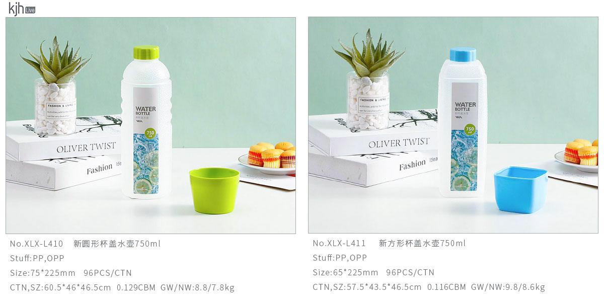 新圓形/方形杯蓋水壺750ml